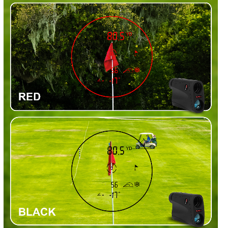 特点: 视野超清、模式精准、红黑字可识别环境自动调换 旗杆锁定+震动,坡度补偿
