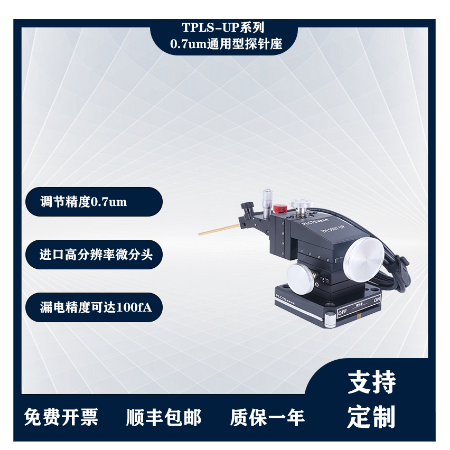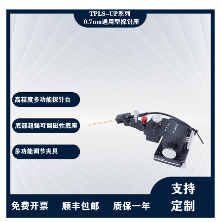 探针座作为探针台的核心部件,主要用途是连接探针和线缆,为半导体芯片的电参数测试提供一个导通条件,从调节精度上来区分可分为10um/5um/3um/1um/0.7um/0.5um等,从操作方式来区分可分为手动和电动,此外根据应用场景的不同又可分为通用型探针座/万向型探针座/L型探针座等,广泛应用于半导体及光电行业的电学参数测试。