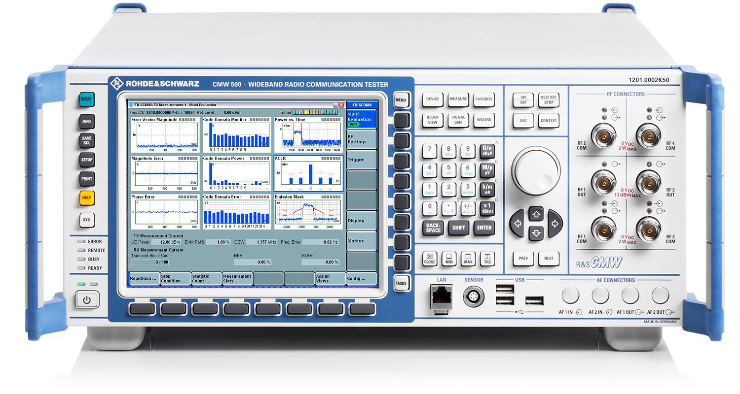 R&S®CMW500 是无线设备空中接口测试的综合性测试仪,支持所有常见蜂窝和非蜂窝无线技术,并且支持和测试所有协议层,它可扩展并根据任何应用进行调整。