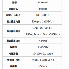 通道:单通道 ATA-4052 高压功率放大器--西安安泰 电压:最大输出电压310Vp-p(±155Vp) 电流:最大输出电流2Arms 带宽:带宽(-3dB)高达DC~500KHz 压摆率:压摆率 450V/μs 输出:双极性输出