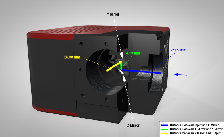 X轴和Y轴反射镜在右侧剖面图中标出。