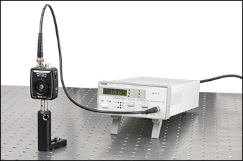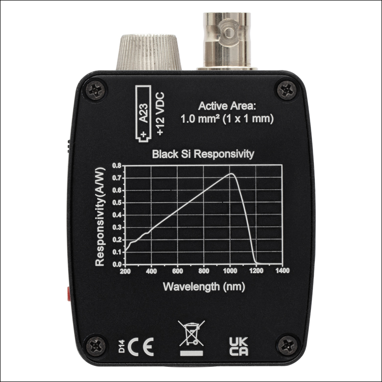 这些探测器具有宽带直流耦合输出,非常适合监测快速脉冲激光和直流光源。侧面的BNC接头提供直接的光电二极管阳极电流。通过一个终端电阻将该输出转换为正电压。如果查看高速信号,Thorlabs推荐使用50 Ω负载电阻。对于较低带宽应用,利用我们的可变终端或固定短样式终端能够快速调节测量电压。下方探测器没有放大器和内置增益,因此工作速度一般比我们的PDA系列放大光电探测器要快;对于需要增益或可更换滤光片的应用,PDA放大光电探测器可能更为合适。