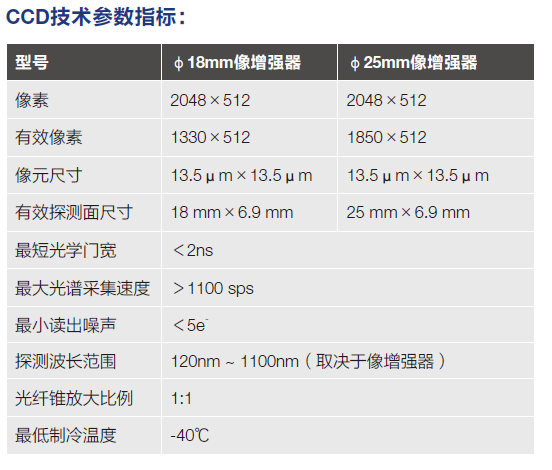 • IntelligateTM微通道板与光阴极实现同步门控,在深紫外段也保持