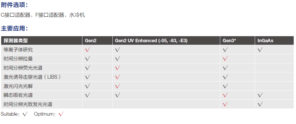 iStar 340T 系列ICCD 采用高品质二代或三代像增强器,集成2048×512 规格的科学级CCD,像素尺寸13.5μm。是现在光谱分辨率的光谱型ICCD。iStar 系列光谱ICCD 是目前高端科研市场上应用最为广泛的带有时间闸门的增强型CCD。最短曝光时间可达1.2ns,该系列产品主要用于燃烧过程、生物发光机制、化学反应过程等研究领域,利用其信号增强功能和时间闸门控制特点,实现极弱信号采集、时间分辨影像捕捉等实验功能。