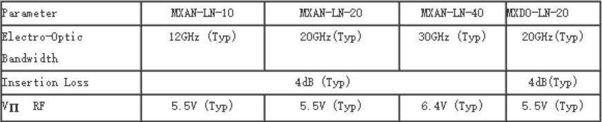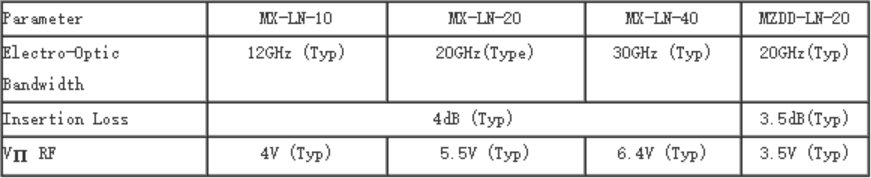马赫-曾德尔(Mach-Zehnder)调制器的X-Cut设计使其具有极高的工作稳定性和零啁啾性能。Photline公司具有专利技术的波导设计使其调制器兼具低损耗与高消光比的特性。