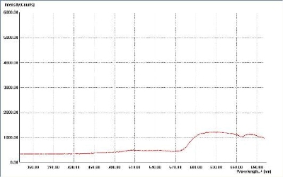使用光纤光谱仪测出卤钨灯光谱作为参考光谱,测出样品的透射光谱。通过光谱仪软件获得样品的透过率曲线。