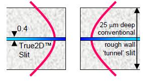 ● 宽度为2.5或5.0μm 的2D™狭缝对,