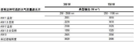 个太阳常数。用户还能选用大气质量滤光片模拟太阳辐照的各种状态。表1 显示了91160 型模拟器在设计的辐照平面中典型的光谱输出。