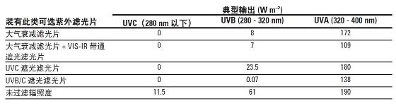 表2 91260 型紫外太阳光模拟器的典型光束输出