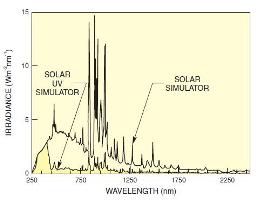 仅模拟太阳辐射的紫外部分;我们的全光谱太阳光模拟器的总输出光束中的紫外线百分比小于6%。紫外太阳光模拟器的总输出光束中的紫外线百分比约为36%。