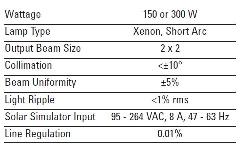 理波公司出品的150-300 W 太阳光模拟器可射出均匀准直的2 x 2 in. 输出光束。根据光谱输出的不同,我们可提供两种型号的产品。