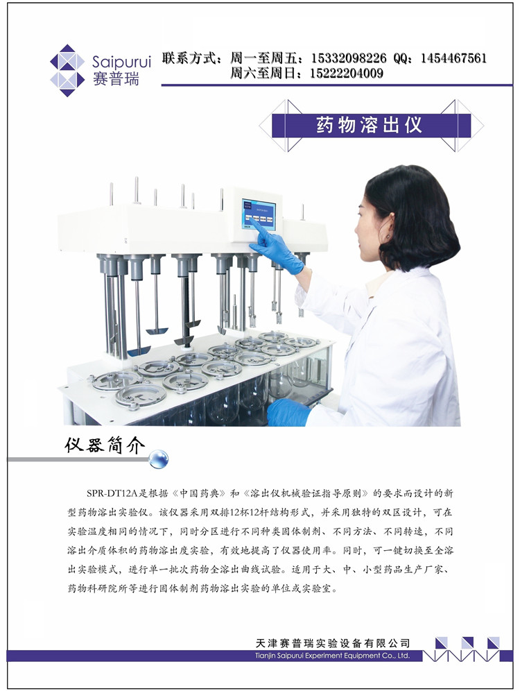 SPR-DT12A溶出试验仪(溶出仪/药物溶出仪)主要特点: