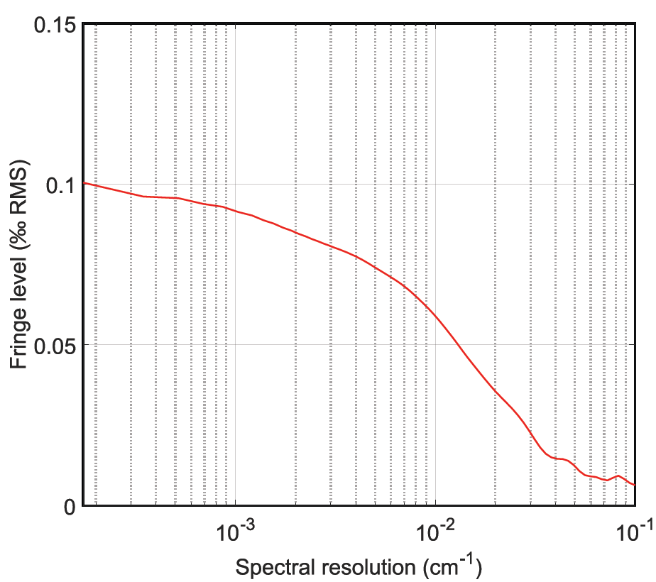 光学噪声Fringe level< 0.2‰ RMS,标准值接近0.1‰ RMS;