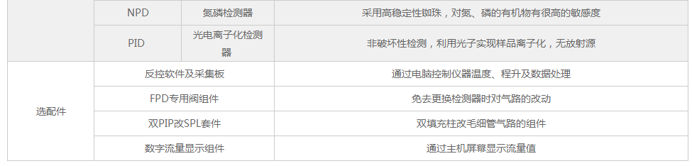 可实现填充柱柱头进样方式,适用多种色谱柱;增加六通阀进行气体进样分析;在填充柱进样器中使用连接件,可简便地完成0.53宽口径毛细管柱分析。