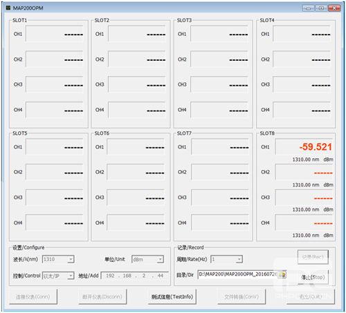 Multi-OPM软件不仅可作为监视功率值的显示终端,也可作为光功率计的参数控制终端。在后台即可实现远端监测和控制。控制内容包括校准波长,单位,告警相关参数。节省了大量的时间,提高测试效率。