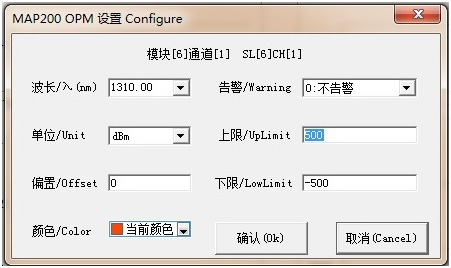 同时监控最多32路光功率计。Multi-OPM监控界面按照mOPM-C1模块的实际槽位排列,光功率通道按照模块的实际通道序列排列,功率测量值显示于每一通道的显示框中,简单明了,避免通道混淆。同时,可根据告警门限设置,提供通道告警,异常状态将一目了然。