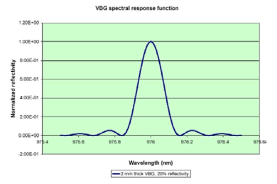VBG主要用于稳定激光器的输出波长和压窄线宽。比如稳定大功率激光二极管的输出光谱。