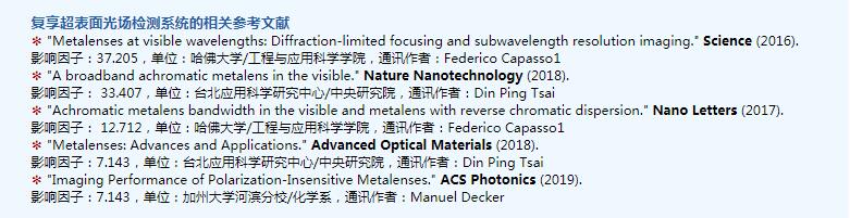 典型应用领域: 超表面器件 超表面器件在空间上具有复杂的光场调控能力,需要在微米尺度下扫描光场。 超透镜 受限于设计规模和微纳加工能力,超透镜难以实现较大口径。面向折射型透镜的传统检测工具已无法满足该类器件的光学性质表征需求,针对超透镜特点设计的检测平台应运而生。 微透镜 口径在数百微米以下的微透镜及阵列,在集成光学中已开始发挥重要作用,受限于透镜口径,当前缺乏商用化的微透镜光学指标检测平台。 AR-Meta 超表面光场检测 在以上领域的应用得益于如下几个特点: 1 μm 量级测量区域 AR-Meta 基于 Olympus 商用显微平台,配合消除像差的准直及成像光路,实现了 μm 量级超表面器件光场检测; 2 超过 7 项关键指标 围绕超表面器件及超透镜领域的研究热点,AR-Meta 形成了焦距、成像分辨率 (含角向分辨率)、点扩散函数 (PSF)、调制传递函数 (MTF)、斯特列尔比 (Strehl Ratio)、数值孔径 (N.A.)、偏折效率 (Deflection Efficiency) 等超过 7 项衡量器件光学性质的关键指标; 3 最宽 380~1700nm 谱段 AR-Meta 内部支持两个谱段:可见和近红外 (含 850nm,1310nm,1550nm),并通过高稳定切换部件实现了两者的切换,与之匹配的是可以通过外部接口,引入多种波长的激光光源; 4 反射 + 透射 AR-Meta 具有独立的反射与透射两套光路,能够轻松实现反射情况下 0~20mm 纵深,透射情况下 0~2mm 纵深的光场扫描; 5 工程化设计 AR-Meta 在设计中充分考虑了光路切换的稳定性,实现了控制的自动化,保障良好用户体验; 6 除此之外,内秉的线偏振与圆偏振器件,多种滤色片的选择等,使 AR-Meta 的应用覆盖了超表面检测所需要的多数场合。