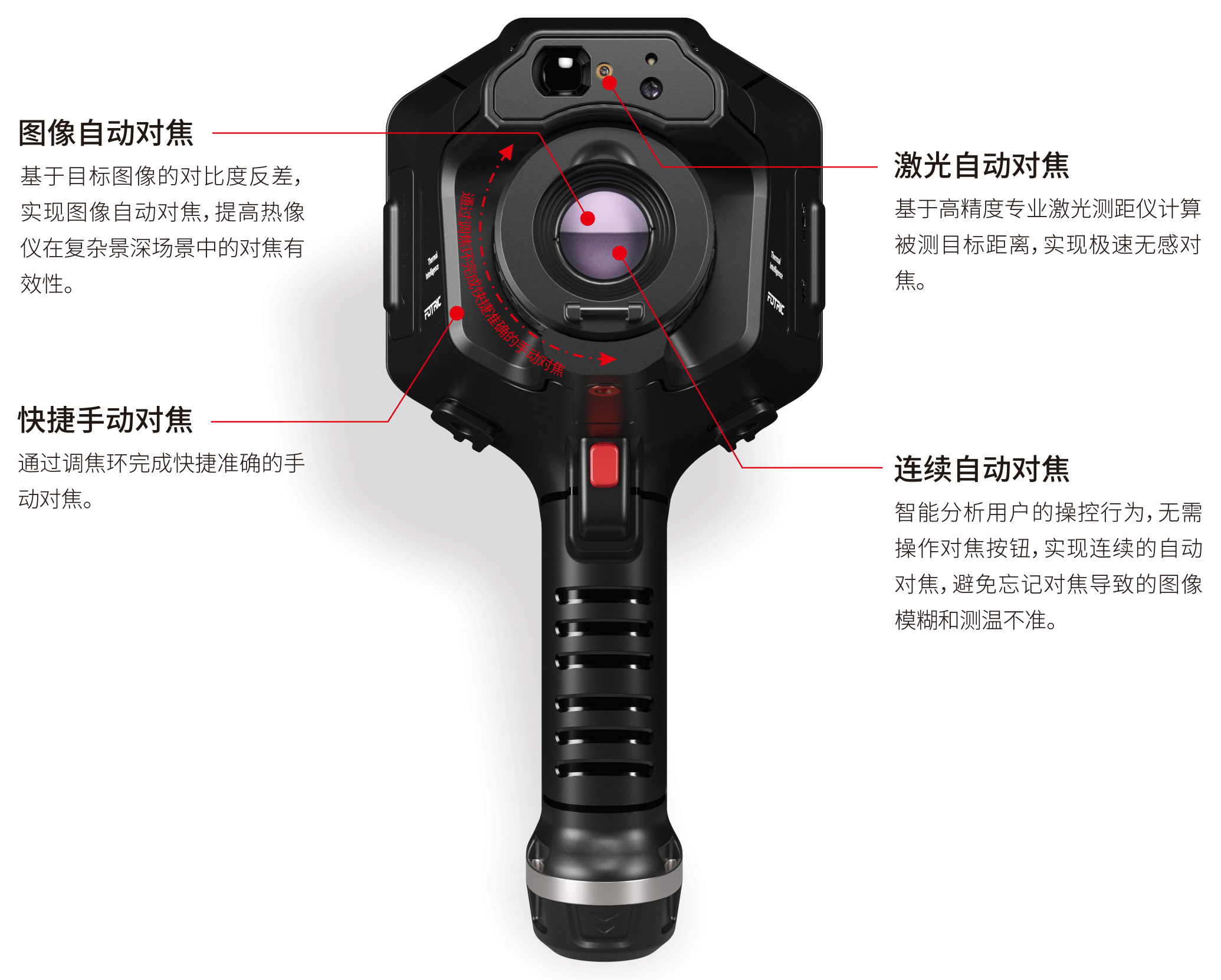 FOTRIC全新打造的TurboFocus智能对焦系统,充分融合图像自动对焦和激光自动对焦的优点,并以智能连续对焦的方式,保证成像清晰,避免对焦不准造成的测温误差。