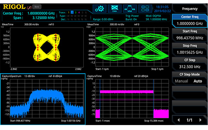 矢量信号分析功能VSA支持多种数字调制格式,如QAM,PSK,MSK、ASK、FSK等。通过该功能进行快速地解调,展示其星座图,眼图(基带信号),频谱图,解调数据等多维数据,从而发现设计中存在的问题。
