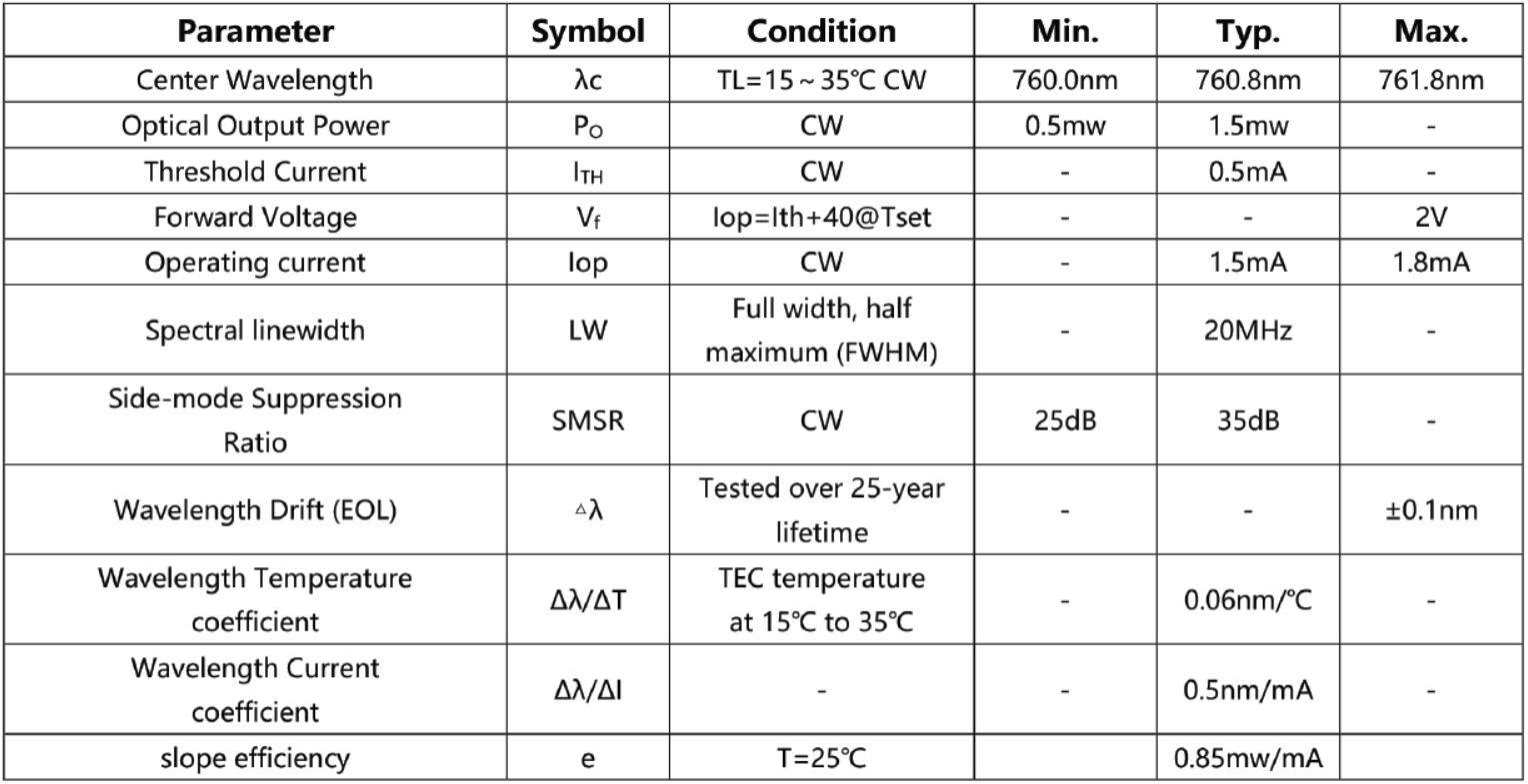 760.8nm VCSEL激光器,专业用于氧气吸收光谱分析;