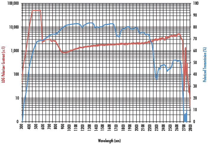 消光比:>100:1 @ 300-400nm, >50000:1 @ 450-550nm, >800:1 @ 700-1400nm, >1000:1 @ 1400-2650nm