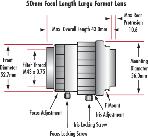 TECHSPEC® LF系列定焦镜头非常适用于2K,4K,6K,8K线阵相机和中等尺寸面阵相机。经优化可用于机器视觉工作距离,LF系列镜头拥有高分辨率,能够轻松检测到微小缺陷。此外,这款镜头可锁定焦距和光圈,适用于工厂自动化应用,可防止振动导致性能下降。TECHSPEC® LF系列定焦镜头,非常适用于机器视觉,网络检测,分拣,和识别应用。