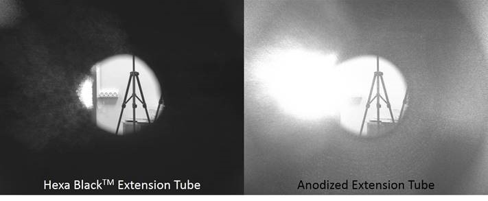 Acktar Hexa-Black™ C 接口降噪加长套管用于在担心杂散光的 C 接口成像系统中增大图像距离。这些加长套管采用 Acktar 的 Hexa-Black™ 技术,可在高达 88°. 的掠射角提供极高的杂散光吸收能力。超黑的 Hexa-Black 材料经过特定设计,在 UV 到 MWIR 的范围内具有宽带吸收能力,可提供高达 8 x 10-7 的杂散光抑制比。与标准阳极电镀铝套管相比,Acktar Hexa-Black C 接口降噪加长套管能在成像系统中实现更高的信噪比 (SNR) 和更低的噪声。提供多种长度,可在相对两端采用公/母 C 接口螺纹;若您的应用需要自定义尺寸的降噪加长套管,请联系我们。