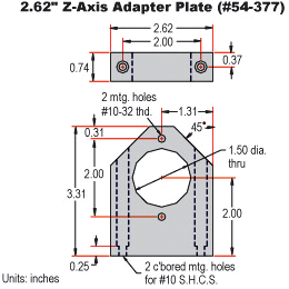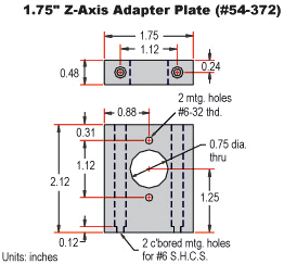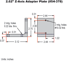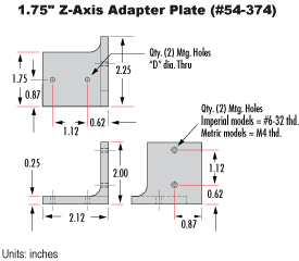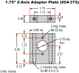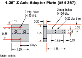 Note: #54-374 Z-Axis Plate for 1.75" Stages is for use with 1" or 25mm travel stages: #37-935, #37-936, #37-955, and #37-956.