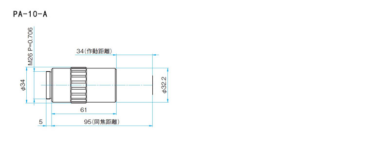 PA-20-L-A | 20X | 0.92 | 0.3 | 10 | 31.1 | 3.1 | Ø1.2 | 0.24×0.32 | 280 |