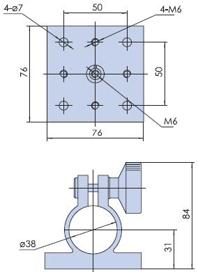 特点:■安装面上有标准孔距的M6螺纹孔和光孔,方便固定其它调整架或物品■中心M6螺纹套可拆卸,方便更换■与支撑棒五面夹具配合,可进行倾斜调整■大锁紧手轮,可将支撑棒夹具稳固锁定在不同高度