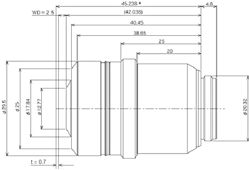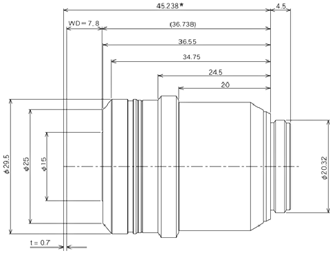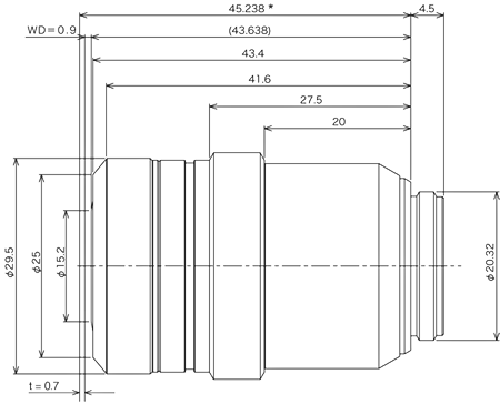 物镜 | 倍率 | N.A(开口数) | W.D.(焦点距离)(mm) | F.N.(视场) | 玻璃厚度矫正(mm) |