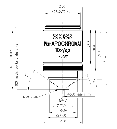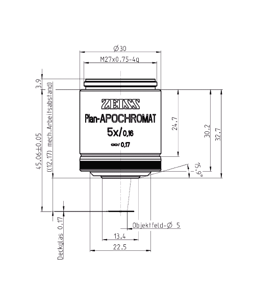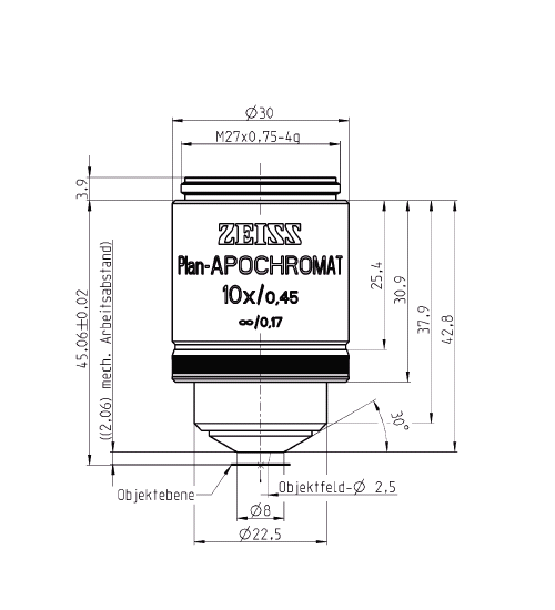 规格 | Objective "Plan-Apochromat" 5x/0.16 M27 | Objective "Plan-Apochromat" 10x/0.45 M27 | Objective "Plan-Apochromat" 10x/0.3 M27 | Objective Plan-Apochromat 20x/0.8 M27 |