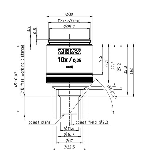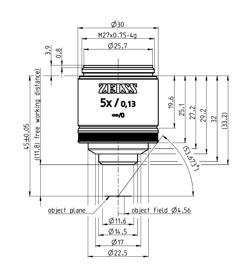 规格 | Objective EC Epiplan 5x/0.13 M27 | Objective EC Epiplan 10x/0.25 M27 | Objective EC Epiplan 20x/0.4 M27 | Objective EC Epiplan 40x/0.6 M27 | Objective EC Epiplan 50x/0.75 M27 | Objective EC Epiplan 100x/0.85 M27 |