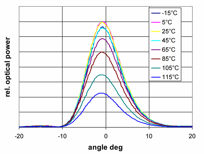 您将受益于较宽温度范围内的线性性能和低阈值电流