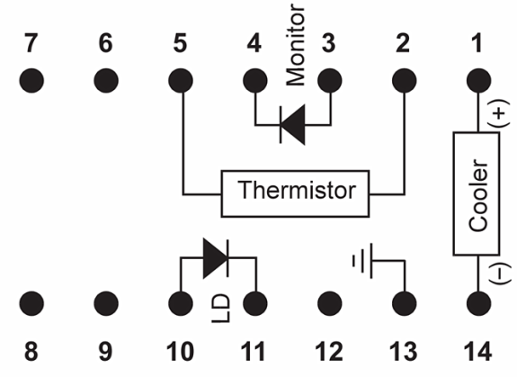 4 | PD Monitor Cathode (+)可选 | 11 | Laser Cathode (–) |