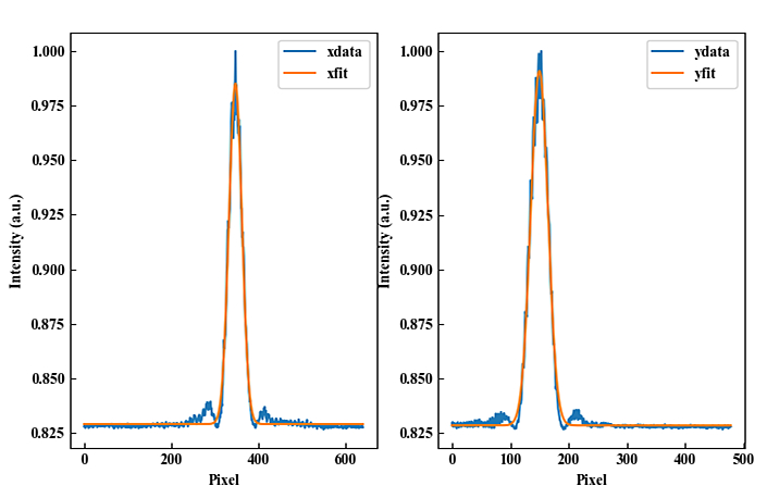 测试相机Pixel size = 5 μm,高斯拟合光斑直径为320 μm