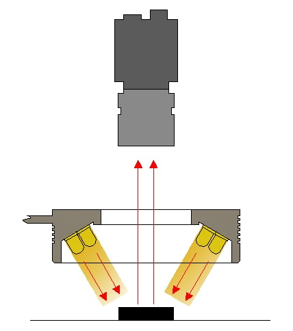 环形光源由高亮LED阵列特殊设计而成,光源角度以中心垂直线为基准,提供多种不同照射角度选择,适应于检测物体的边缘清晰特征,突出感兴趣的被测物体信息,解决对角照射阴影问题。
