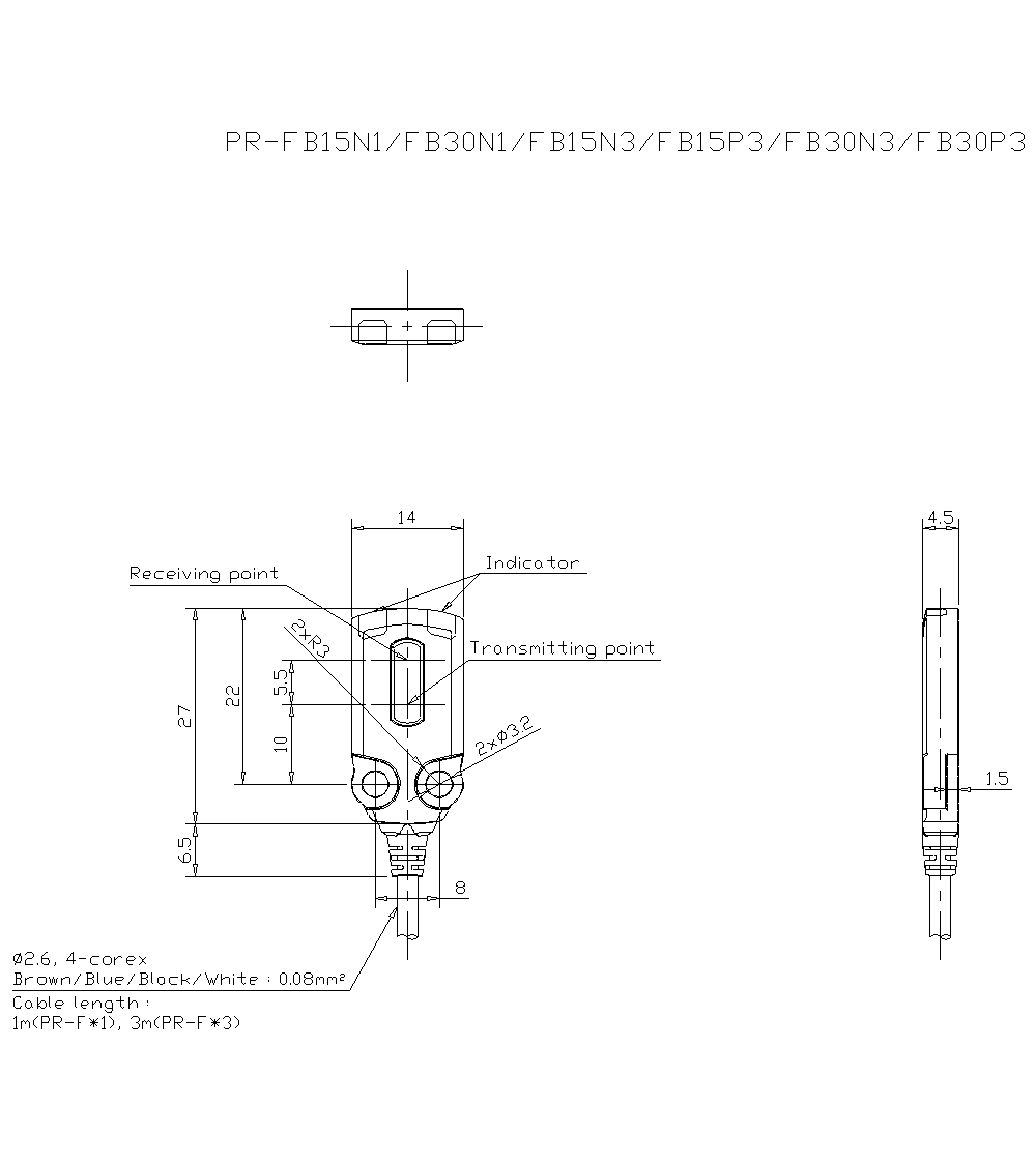 显示指示器 | 输出指示灯 (橘黄色)、稳定动作指示灯 (绿色)、透过型的发射器:电源指示灯 (绿色) | |||